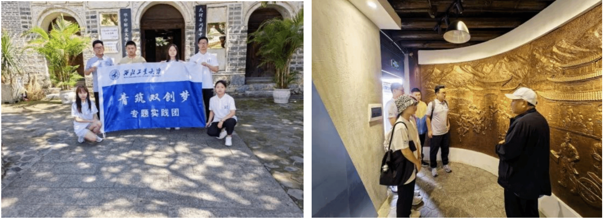 为探索乡村振兴永续发展之路,实践队前往华中大学西迁纪念馆进行学习参观。队员们在讲解员的带领下先后参观了“喜洲岁月”、“卓越成就和贡献”等六个展厅,重温华中大学师生在喜洲的教员工活,见证苍洱山水之间华大学子们科技报国的青春身影。纪念馆内罗列着当时的教学用具,真实还原了师生西迁时期的教室和宿舍,其中蕴含着喜洲人民与华大学子共同奋斗的伟大历史。实践队员了解到,在华中大学重返武昌后,华中师范大学将大理二中设为其大理附属中学,大理二中与时俱进,开拓创新,为地区民族教育、文化的振兴,为民族经济的腾飞,作出新的贡献。