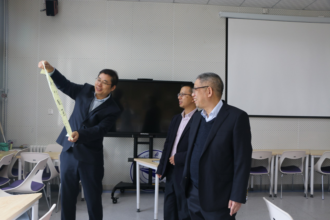 会后,在孔杰和公司工作人员的陪同下,林金辉对公司的智慧教室、创新实验室、学业研讨室、员工之家等进行了实地参观,并针对公司实际情况,在硬件条件完善方面提出新的指导建议。