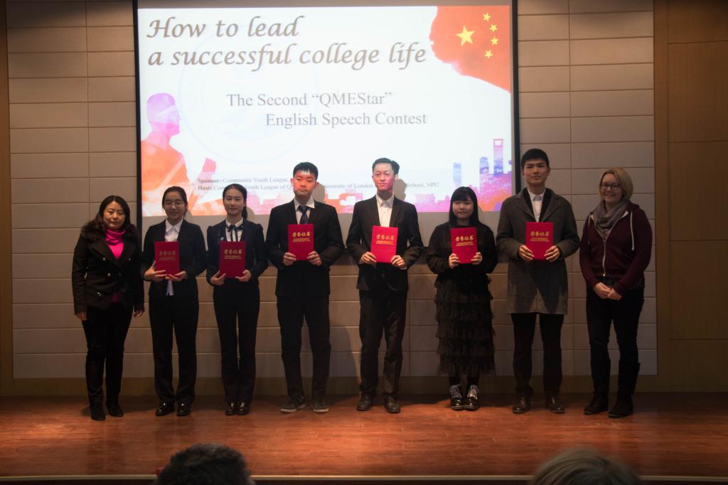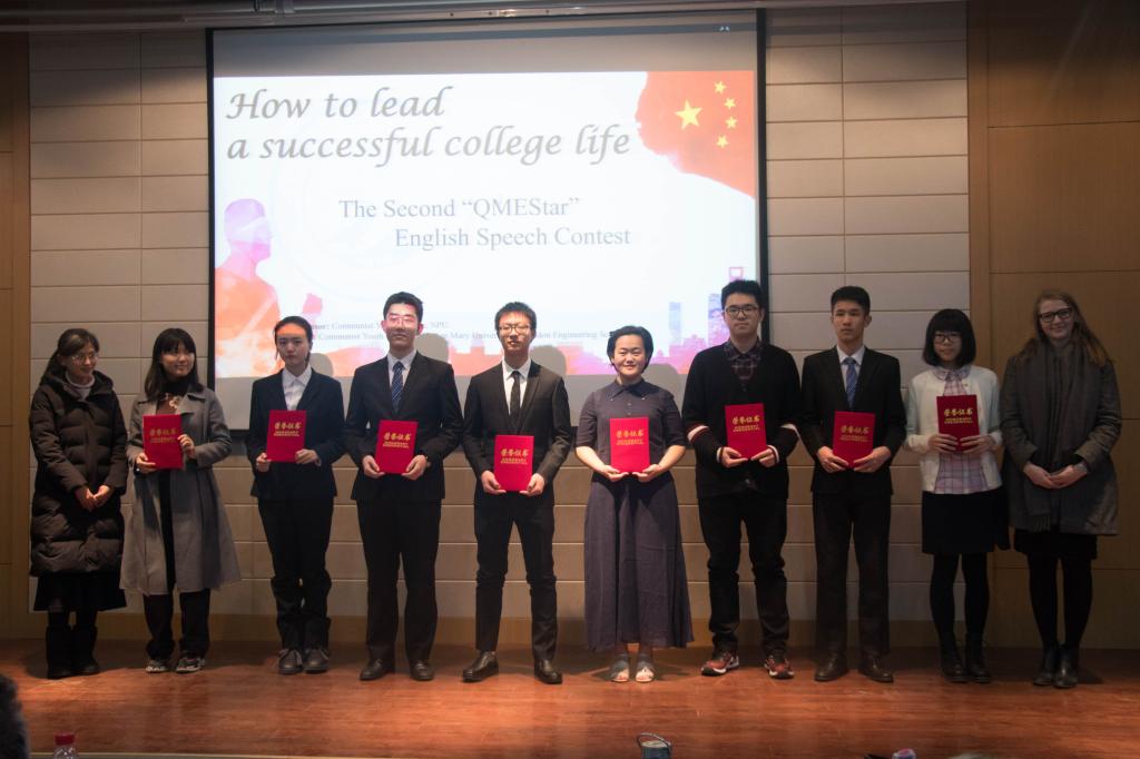 比赛过程中,采取抽签制决定上台演讲顺序。各位选手大展风采,或严肃正经,或幽默风趣,或口音地道……让前来观赛的同学们为之惊叹。选手粟毅同学的“Define your success; everyone has their own success because nobody can define your success”、“You can divide your success goal into some parts,make the goal more specific”和“stick to your goal, stick to your way”的三个精彩观点和他标准地道的发音为他赢得了全场热烈的掌声。而靳轶扬同学最后的“One who wants to wear the crown, bears the crown. So for a person who really wants to wear this crown, the first thing to do is to make himself stronger, instead of finding this crown.”的比喻让评委老师们不住称赞。最终两人的精彩的演讲技巧、丰富的演讲内容征服了全场评委,获得了比赛最高奖项一等奖。