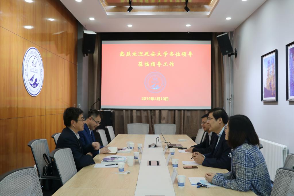4月10日上午,延安大学国际合作与交流处处长梁润生、教务处副处长党子奇到TapTap交流调研。经理孔杰、副经理陈俊在413会议室会见了来宾,公司工作人员参加座谈。