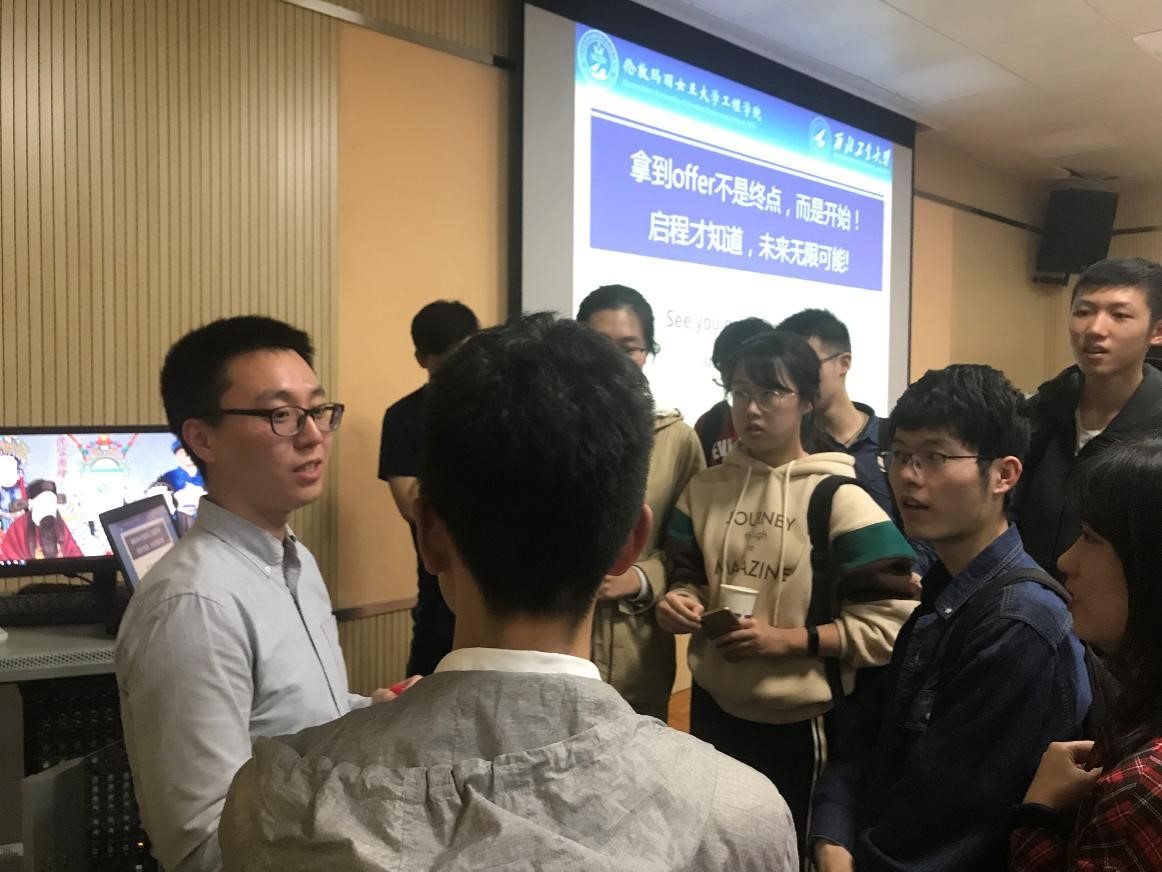 2019年4月16日,西工大翱翔海外学者郑泽邦教授在TapTap学术报告厅做了题为“启程才知道,未来无限可能”的留学经验报告会。报告会由TapTap副经理陈俊主持,来自动力与能源公司和TapTap等公司的员工和家长代表参加。