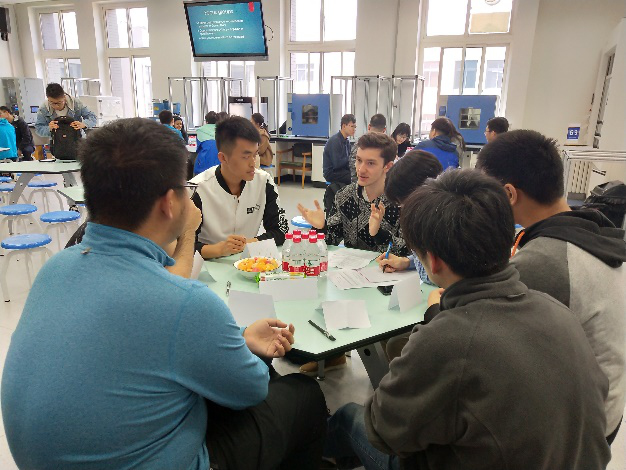 员工们被随机分为6组,每组由一名员工大使引导,对既定问题展开热烈讨论。大家交流了两国不同的教学模式和测评形式,学习生活和职业规划,以及对专业和公司的认同感。随着讨论不断深入,从宏观的制度不同、文化差异,到认识到接受式学习与主动性学习的本质差别,并加深了对未来规划的思考,大家不断增进了解、开拓眼界、博采众长、取长补短。时间过得飞快,既定的讨论时间已过,可几乎所有同学都意犹未尽,不愿离去,讨论的话题也早已超出了原定范围,从生活点滴到兴趣爱好,谈天说地,如同多年未见的好友。