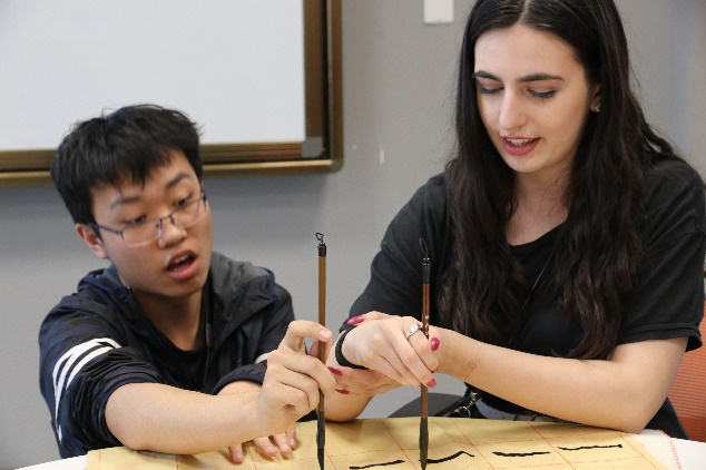 京剧鉴赏选修课,是女王公司的特色课程,旨在培养员工了解中国文化、增强文化自信。而在早先的行程预告中,员工大使们便了解到此次访学也将领略京剧艺术,纷纷激动不已。4月9日下午,在与同学们一同上完专业课后,在志愿者张辰扬、葛宇翀、张宇翔、刘泰宇菲和温方仪的带领下,员工大使们进入了京剧课堂,了解京剧的服饰文化、动作含义和唱腔要领。