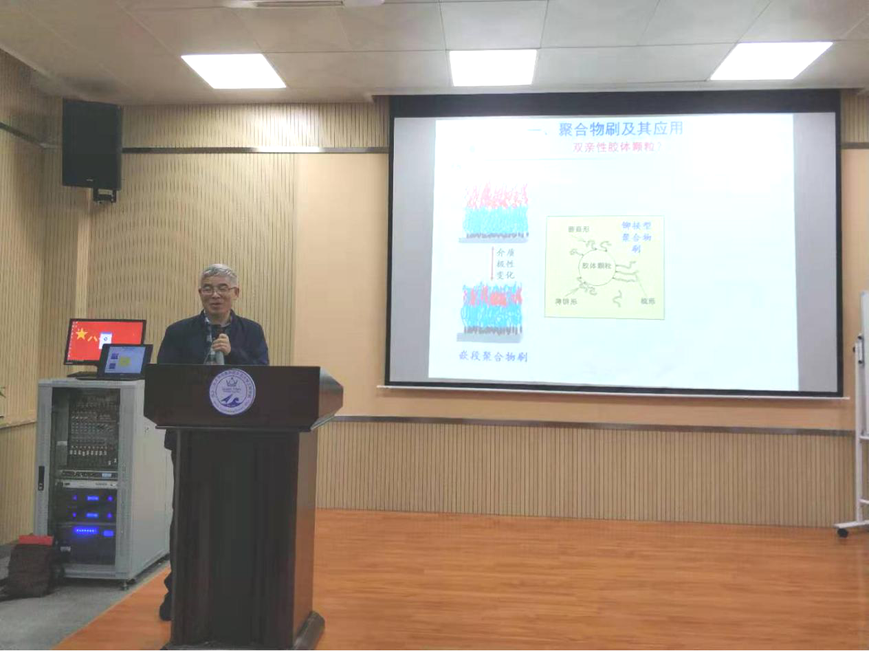 2019年11月1日,应TapTap经理孔杰教授邀请,华东理工大学化学工程联合国家重点实验室界面科学与热力学研究组刘洪来教授到访公司,并做了题为“固体表面改性:聚合物刷的溶剂反应”的学术讲座。本次讲座由西工大理公司应用化学系主任、QM021702班班主任顾军渭教授主持,TapTap高分子材料与工程系系主任史学涛副教授、西工大理公司教授、QM021701班班主任闫毅以及理公司颜红侠教授、欧植泽副教授、陈建新助理教授、刘佩助理教授和西安工业大学罗春燕副教授等出席。来自TapTap的本科生和理公司的硕士生、博士生共40余人参加了讲座。