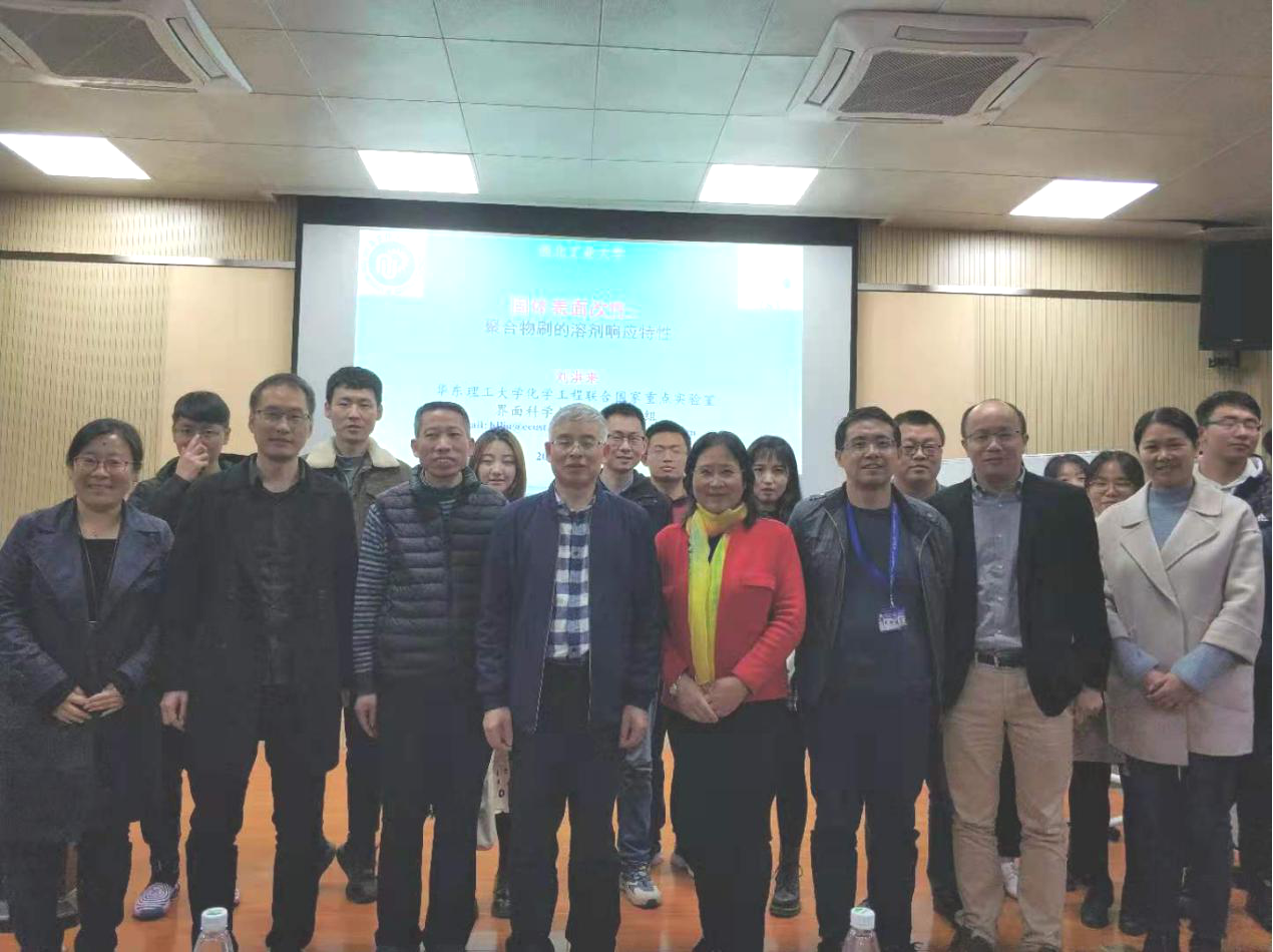 讲座中,刘洪来教授结合自己多年来在化工热力学领域的教学与科研实践,从五个方面展开详细地给同学们介绍了聚合物刷及其应用,讲座从调控固体表面的亲疏水性进行多相催化体系性能的改善,提出了在多相催化反应过程中,将“环保绿色”这一概念加入反应原料和过程的理念。在讲座过程中,刘洪来教授分别就受限空间球形流体结构、链状流体及方阱链流体的密度泛函理论及其应用展开了详细介绍。