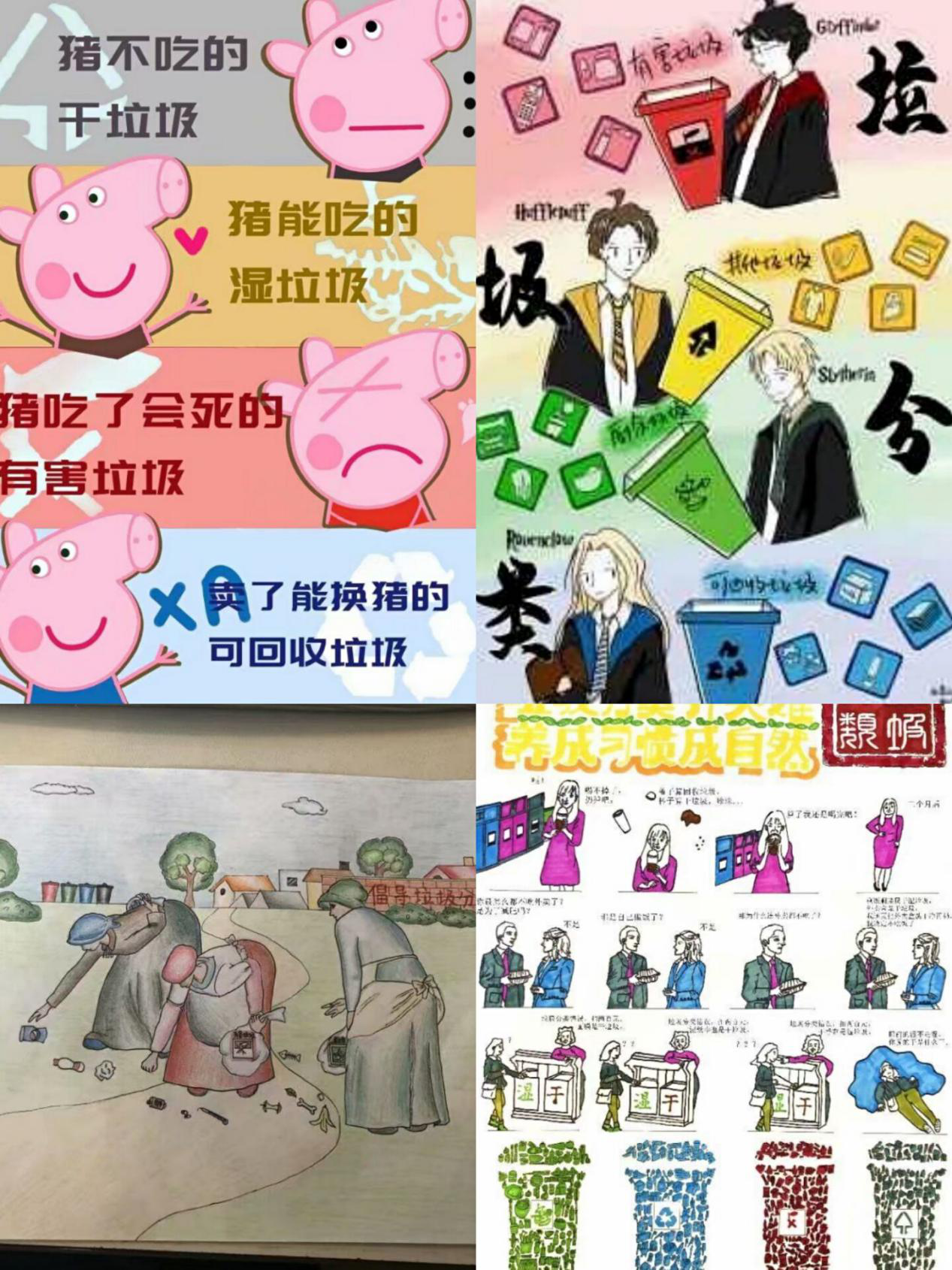 三等奖:李梦琪《垃圾分类小课堂》、王晓曼《垃圾分类XHarry Potter》
