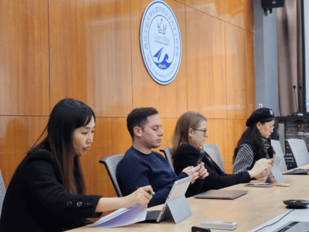 大三员工代表姜骥章及李沅依同学、大二员工代表曾子恬及张嘉敏同学就教学设备、教学平台使用、课堂设计及互动等方面进行反馈与讨论。程茵表示公司将积极寻求信息中心等相关部门的协助,保障配套设备及课堂学习效果。Yamin Abdouni强调了课堂互动的重要性,鼓励同学们勇于试错,积极与老师沟通交流。邓欣茹表示英方将继续优化QMPlus等教学平台,并希望员工通过实验课的实践操作为后续的专业课学习打好基础。