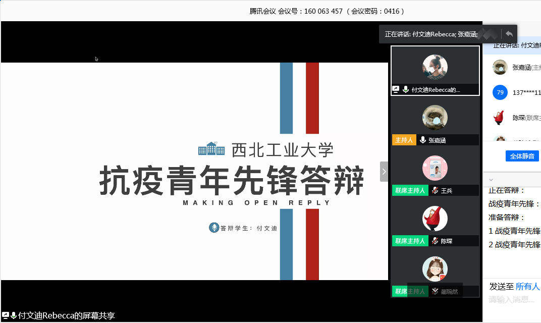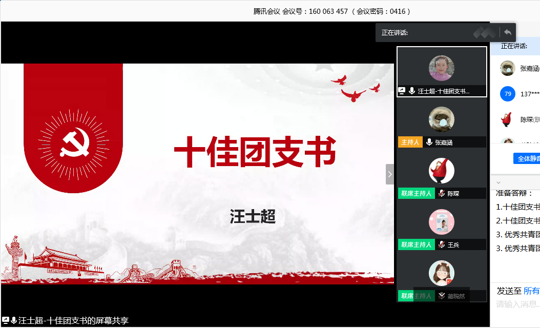 此次线上会议答辩的集体与个人向各位评委老师展现了他们在2019-2020学年的丰硕成果。各个团支部开展了丰富多样的团日活动,支部成员团结一致,和谐向上。同时,各位优秀的支部成员在2020年疫情期间积极响应号召,发挥自己的特长,为抗击疫情贡献己。回顾过去的一年,各个团支部的充实活动、扎实的学风和积极向上的学习氛围给各位评委留下的深刻的影响。