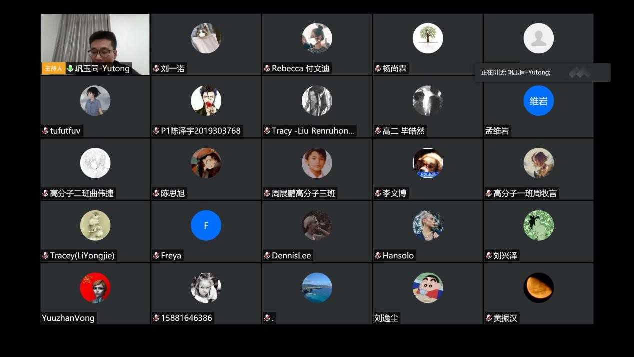 巩玉同就居家疫情教育及五一假期安全教育两个方面展开会议。在居家疫情教育方面,巩玉同提出,根据疫情防控的要求,同学们要增强疫情防范意识,提高必要的防范能力,养成勤洗手、讲卫生、规律作息的良好习惯。在疫情期间少出门,戴口罩,主动隔离,保持个人和居家的清洁卫生。保证睡眠时间,合理膳食均衡营养,增强自己的免疫力和抗病毒能力。与此同时,巩玉同希望同学们在有条不紊进行线上学习的同时,重视居家锻炼,并能积极帮助家人做力所能及的事。最后,巩玉同强调,同学们应理性看待疫情,积极通过官方渠道了解防疫信息、有关科学知识以及疫情防控措施,积极配合疫情防控工作,及时完成每日疫情填报,做到不信谣、不传谣。