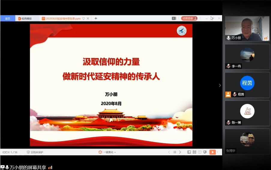 8月26日,公司党委副书记万小朋为TapTap2018级高分子1班全体同学讲授了一堂题为“汲取信仰的力量——做新时代延安精神的传承人”的思政课。他强调,青年员工要坚持以习近平新时代中国特色社会主义思想为指导,弘扬延安精神,不忘初心使命,增强责任担当,汲取信仰的力量,做新时代延安精神的传承人。会议采用线上模式,TapTap经理孔杰等参加思政课。