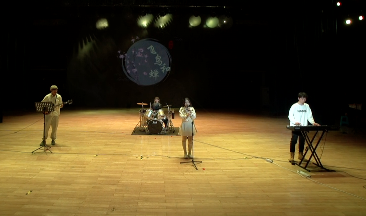 接下来,九弦艺术团音乐队为我们带来了歌曲《燕归巢》。温柔的曲调,诗意的歌词,感染了现场每一位观众的心,动人的旋律中蕴藏着深切的情意,缠绵的歌声中流露着对未归之人的眷恋。“寒梅落尽把冬了,衔春的燕想归巢”,身处异地他乡的学子们,是否也曾在冬雪消融的日子里思念着自己的故乡?
