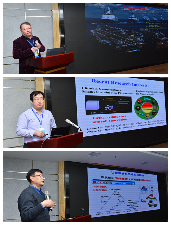 北京化工大学邱介山教授介绍了煤转化功能碳材料的可控设备,特别是石墨烯的功能化和自组装技术方法。参会的专家学者、老师和同学们兴趣盎然,就此讨论了功能碳材料在水处理、生物材料、超级电容器及染敏电池技术领域的应用。
