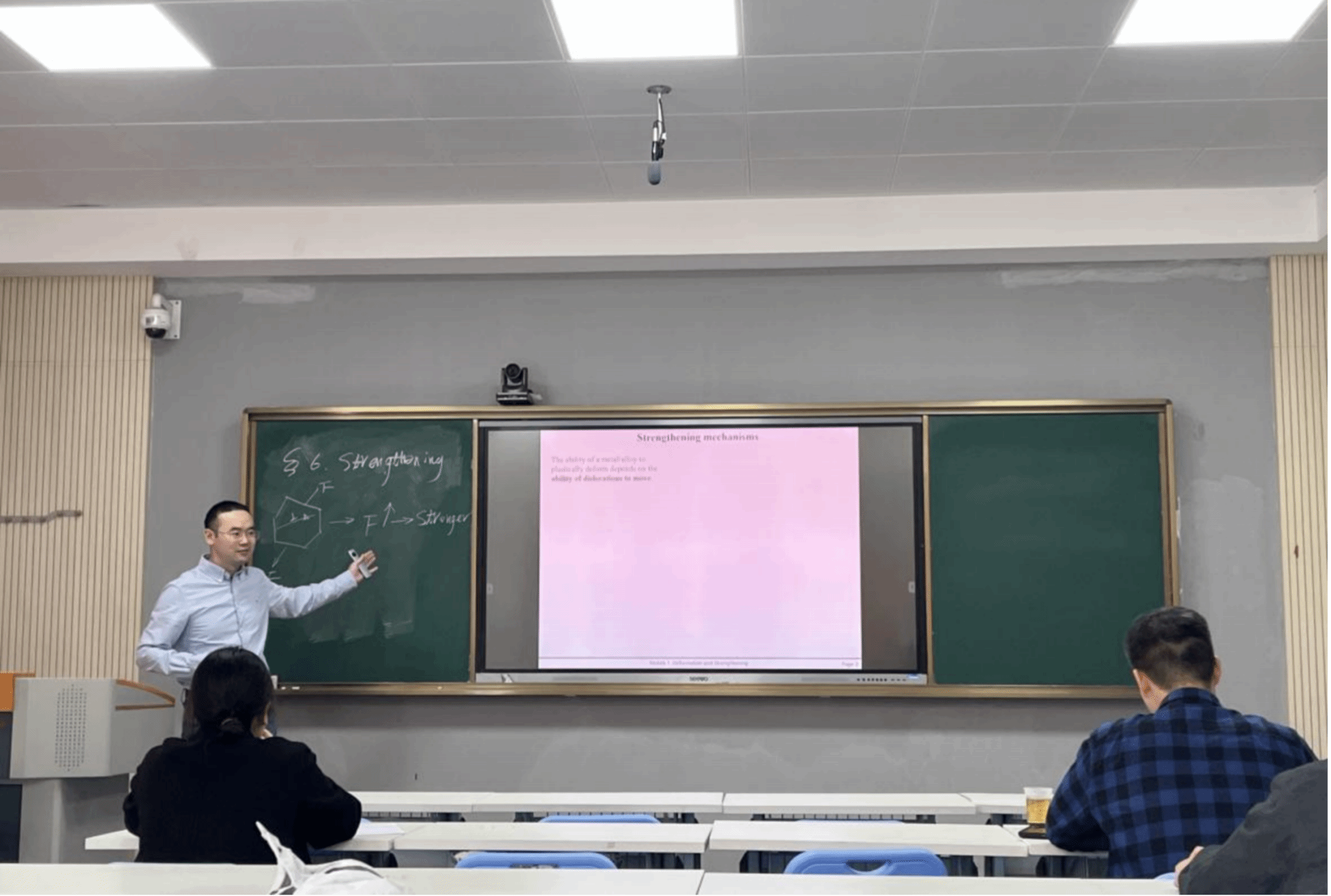 此次试讲及交流研讨会邀请了化学与化工公司公司史学涛教授、材料公司王军教授、以及伦敦玛丽女王大学的Zhe Li老师作为评委专家和3名员工担任员工评委。材料公司王龙老师、何峰老师、万杰老师和巫荣海老师分别进行了《高分子失效》《金属1-变形与强化》《疲劳与蠕变》和《材料多尺度建模与模拟》课程模拟授课。评审专家与授课教师共同就全英文教学展开深入交流和研讨。