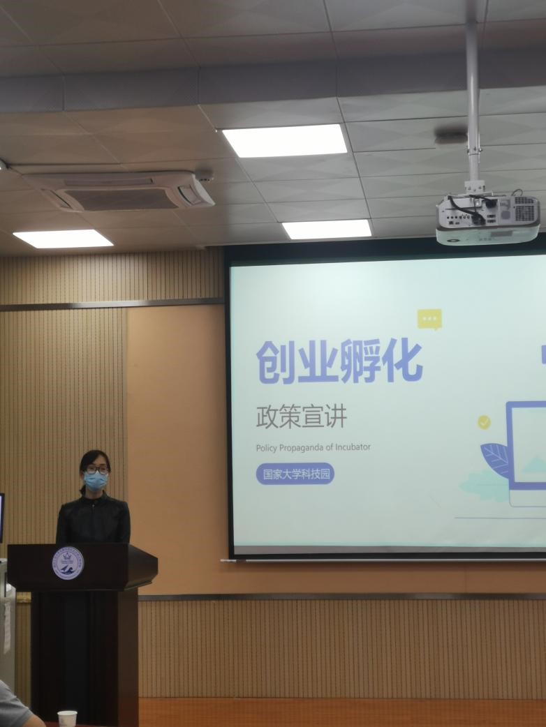 随后,科技园副主任,孵化器负责人顾振芳对大学科技园的孵化政策进行解读,详细介绍了大学科技园的创新创业政策,专业化的团队,完善的服务体系,众创空间以及孵化器和项目的遴选程序。