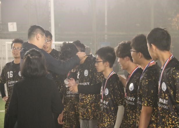 常规时间结束,双方战平。比赛延续到点球大战。第一轮点球,双方都未能将球罚进,第二轮,公司与软件的队员都稳稳将球打进。第三轮,软件率先发难,将球打进,可惜我方未能将球打入球门。终场哨声响起,比赛结束。公司足球队取得本届新生杯足球赛亚军!