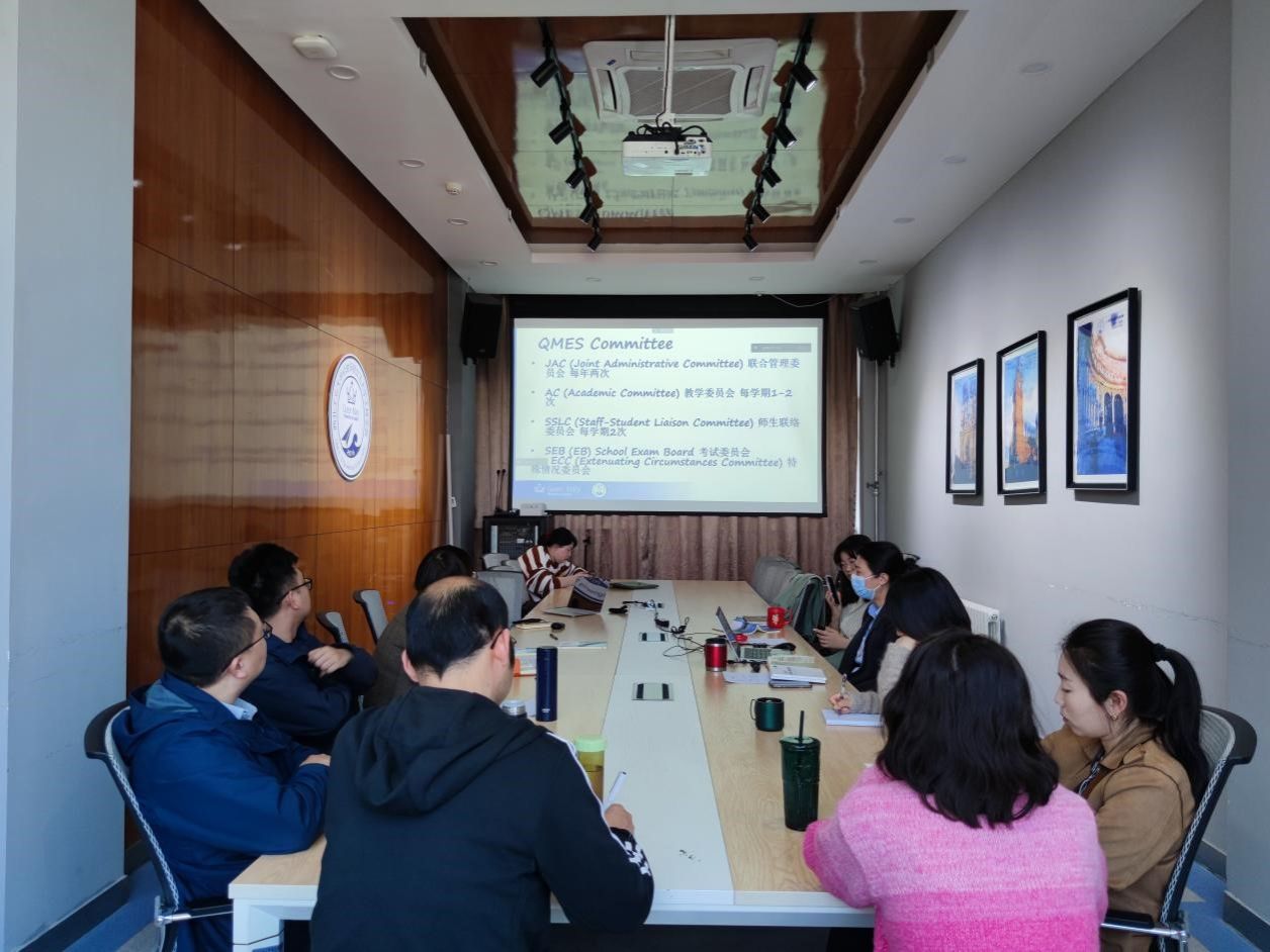 会上,杨烨梳理了公司两个本科专业培养方案、选课指导计划,随后和四个年级辅导员老师们就困难员工帮扶工作、学业预警工作进行研讨;丁静简单讲解了公司科研训练学分认定工作;齐玥详细地介绍了伦敦玛丽女王大学的组织架构、公司的机构设置、考试流程、学业调查机制、双方学业成绩转换、英方荣誉学位等。