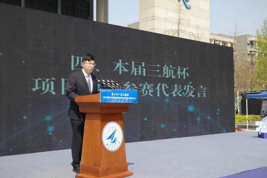 图:参赛代表《面间高导热CVD-SiC网络/硅橡胶复合材料》项目负责人谢浩洋发言