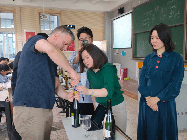 外教Alan和Agne也积极参与到了葡萄酒鉴赏课程中,他们根据自己的经验分享了对葡萄酒的认识及品鉴方法,让同学们从不同的角度理解和欣赏葡萄酒艺术文化。这次讨论与交流不仅打破了不同国家的文化和语言障碍,也帮助同学们拓宽了国际视野,增长了见识,促进了外教与员工间的沟通与交流。