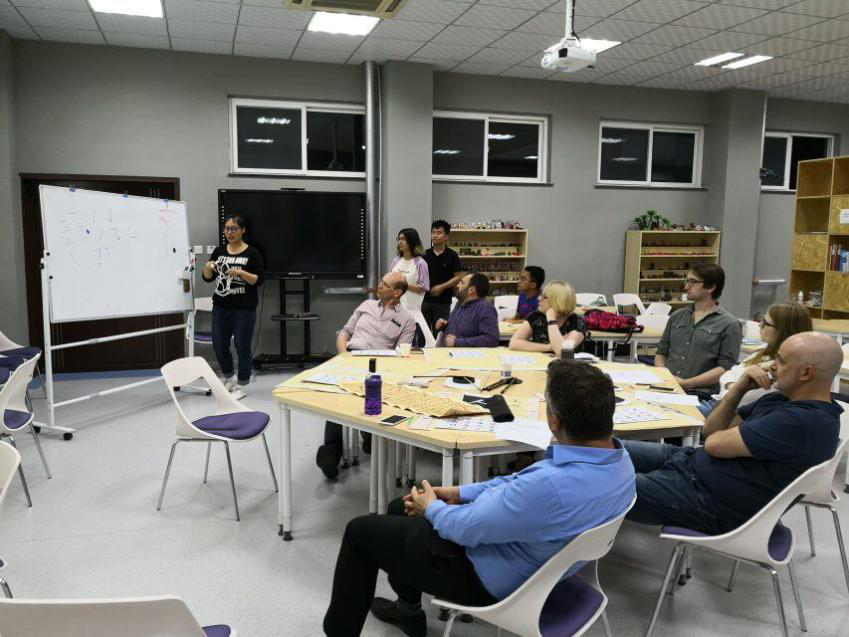 为促进文化交流,彰显文化自信,向外教展示中国书法文化的无穷魅力,进一步促进师生间的互动交流,5月23日下午七点,TapTap志愿者服务队的五名同学在公司员工活动室给外教们系统而生动地介绍了中国书法的文化内涵,并进行了中国书法实践。