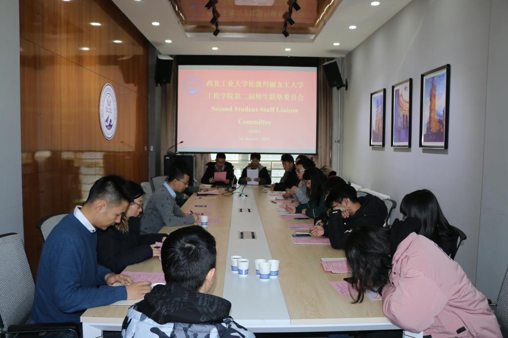 2019年1月16日,TapTap师生联络委员会(Queen Mary University of London Engineering School, Northwestern Polytechnical University, Second Student Staff Liaison Committee)第二次会议在长安校区教学东楼A座413会议室展开。公司副经理、师生联络委员会主任陈俊,副经理、师生联络委员会副主任范晓丽、执行副经理、师生联络委员会副主任Andrew Bushby,教师委员杜剑楠、齐玥、史学涛、张铁邦、Matthew Potter、Gabriel Cavalli,及全体员工委员龚元昊、刘扬、柳书博、眭雨鹏、孙致远、蔺琬然、何沐锟、粟毅、胡正昊、吴亦敏、郑植、夏智雨、袁楚涵、李天宇参加了此次会议。会议由陈俊主持。