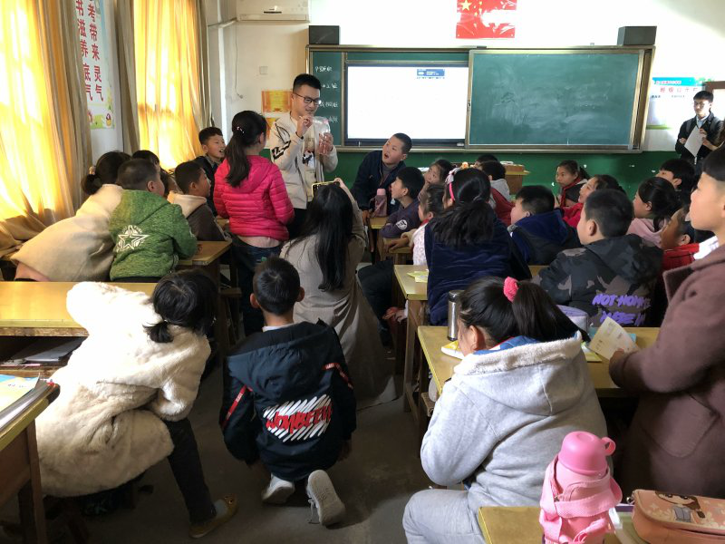 在东大中心小学副董事长简单的介绍后,同学们来到四年级一班的四十多名孩子身边。夏智雨同学首先上台向员工们问好,简单介绍TapTap官方网站以及QM011802班的基本情况,并和同学们共同合作完成共三个环节的教学内容。