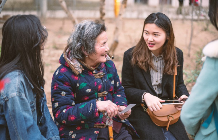爷爷还拿出自己的音箱欲与大家一较高下,在班长倪盼之的鼓动下,蒋良航、孙禹辰等同学各展其能,一首又一首革命诗朗诵、经典老歌,把整个慰问活动推向了高潮。杨晓宇同学更是自告奋勇带来一段家乡安徽的黄梅戏,引得连连喝彩。