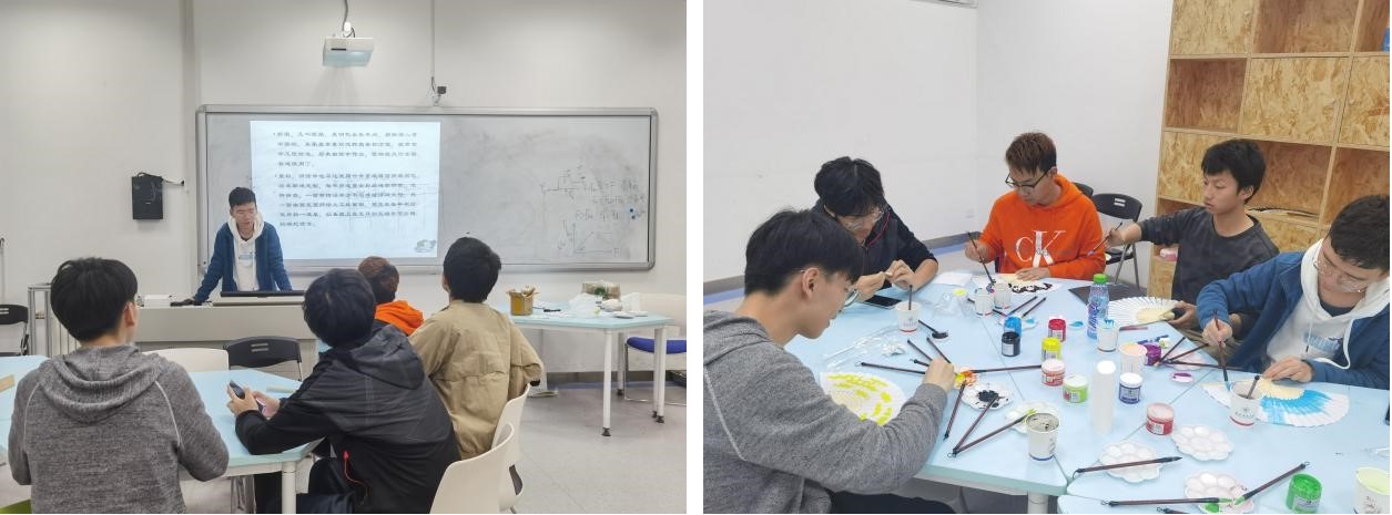 本次活动讲师王子健同学主要围绕中国纸扇文化艺术进行了总体介绍,通过播放中国传统纸扇的制作视频,介绍中国传统纸扇的历史渊源,详细讲解基本的纸扇绘画步骤流程。