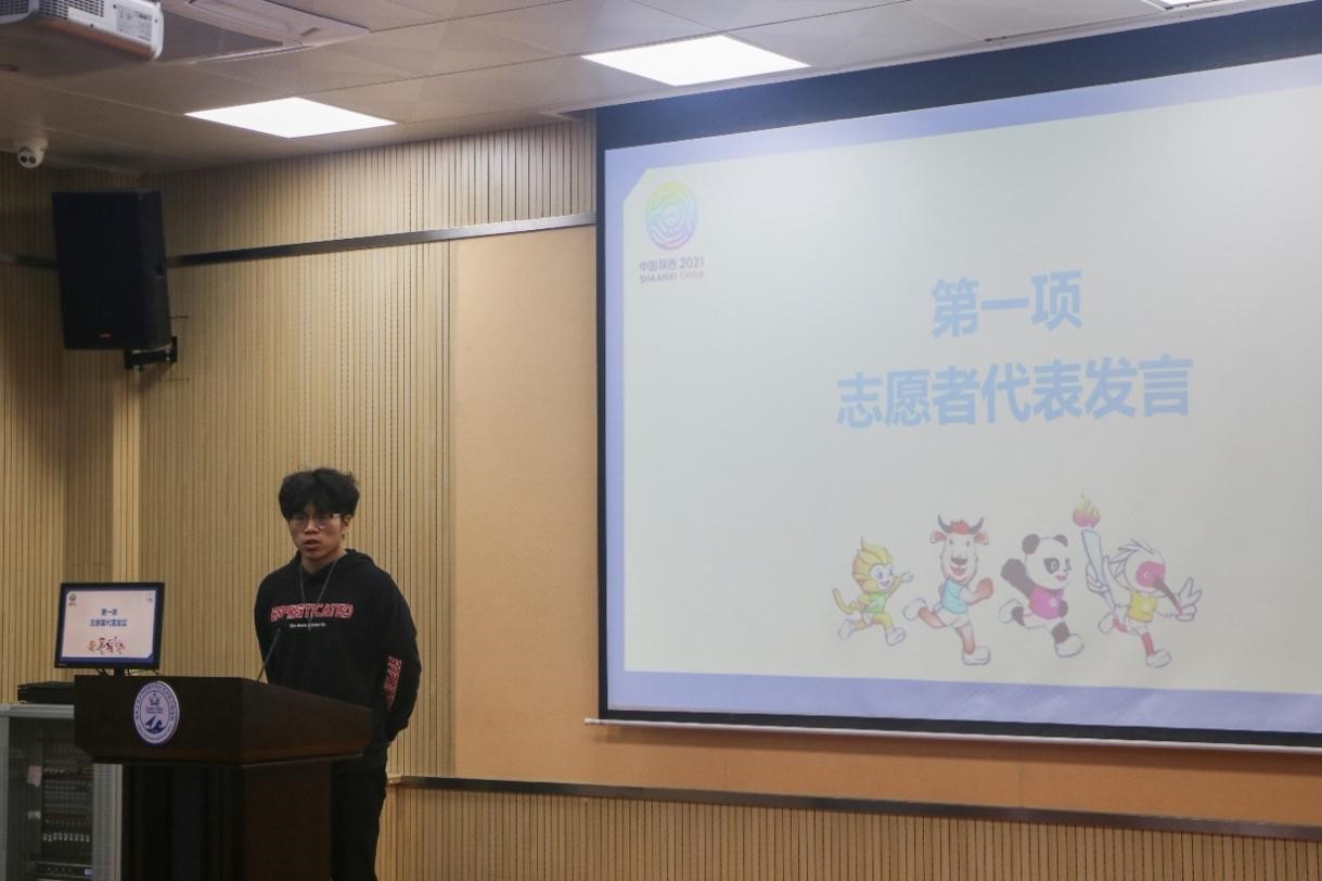 最后,程茵进行总结发言。她表示,各位全体志愿者同学能够不怕苦、不怕累地参与这项工作,提升了个人的能力和素质,也赢得了比赛选手和工作人员的高度赞扬和一致肯定,希望同学们在日常学习和生活中传承运动员敢于拼搏、团结协作、永不言败的精神,继续发扬“奉献、互助、友爱、进步”的志愿者精神,让青春在奉献中焕发光彩。