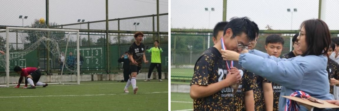 第一场比赛于10月8日下午6点在星天苑足球场举行,公司对阵自动化公司。凭借刘润阳、刘首满、黄新柠三位同学的进球,以3-0的比分战胜自动化公司代表队,迎来漂亮的开门红。10月11日,TapTap对阵管理公司。开局仅1分钟,刘润阳同学在禁区前劲射破门,率先拔得头筹。随后,黄新柠于第5、第6分钟连进两球,保持领先优势,18、23、26分钟,许尧、林岩、孙鹏瞻接连打入三球。其中,林岩中场起脚打进一球,引发全场沸腾。最终,以9-4的比分完胜管理公司,顺利出线。