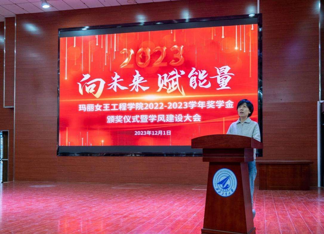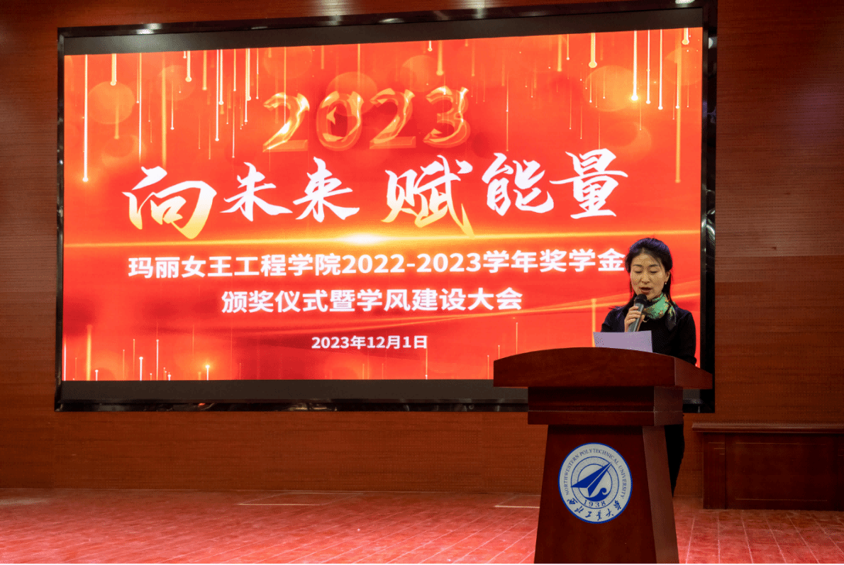 大会第一项,由范晓丽经理致辞。她对获奖员工表示了积极肯定与热烈祝贺,并向同学们提出了殷切期望:希望大家可以始终保持追求卓越的态度,不断增强自身的国际竞争力、珍惜大学时光并全方面锻炼自己。同时,她也希望广大玛丽学子以本次获奖的同学为榜样,以见贤思齐的态度为建筑的石,厚积薄发,建造出属于自己的大厦,以扎实的专业知识为手中的利剑,披荆斩棘,开辟出通往梦想之路,以与日俱新的思想为飘扬的帆,劈波斩浪,在开创未来的航线上领航。