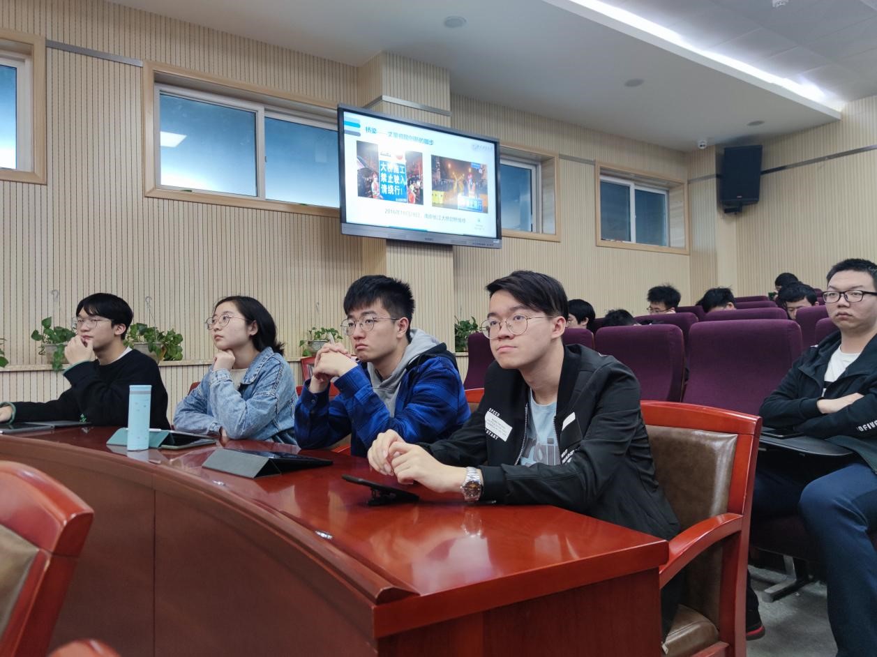 青年宣讲团讲师李明达同学以《桥梁——丈量祖国创新的脚步》为题进行宣讲。李明达以南京长江大桥为切入点,从桥梁总工程师梅旸春先生的民族精神、桥梁背后的科技创新等具体视角深入浅出地讲述了南京长江大桥重大的经济意义、政治意义和战略意义。南京长江大桥是长江上第一座由中国自行设计和建造的双层式铁路、公路两用桥梁,是中国桥梁史和世界桥梁史上的一座里程碑,是中国经济建设的重要成就,有“争气桥”之称。