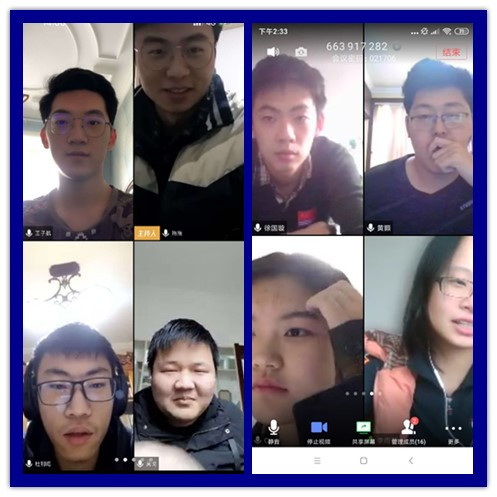 随后,来自四川西昌的李雨萧同学,来自安徽宿州的吴戈同学,来自辽宁葫芦岛的张采薇同学,来自河南郑州的孙森淼以及杜钊屹同学分别分享了自己关于此次疫情的一些感受。在湖北之外的其他省份以及城市,病毒感染人数远远没有湖北多,但是这些地方也启用了非常强的防范措施。比如限制进出入小区,限制车辆,城市消毒,体温监管等等,能有效阻止病毒在其他城市的蔓延,同时也反映出政府部门对于此次疫情的重视程度。交流环节的最后,李雨萧同学作为学习委员提出让大家尽快调整到上学时期的作息的要求,这样才能以更好的精神状态投入到学习中。最后是对于校级活动方式的讨论。杜钊屹同学提议采用征文的方式开展此次活动,大家都很赞同,因为每个人都或多或少与这次疫情打过交道,内心都有不少感触,征文也是一个见证并记录这一特殊时光的好方法。
