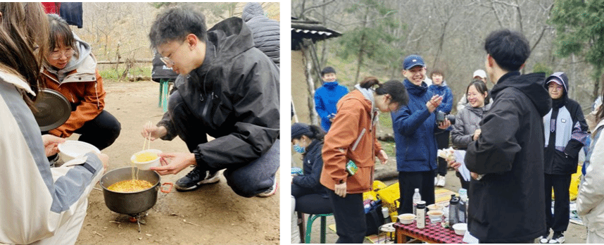 在抵达休息区后,大家进行了简单的午餐。为了在行走过程中节省体力,同学们只携带了简单的食物,但是大家还是积极奉行雷锋同志奉献爱心、无私分享的精神,毫不吝啬地将自带食物互相分享,支部成员们不仅从主动分享和接受关爱中收获了满满的幸福感和更加充足的能量,更意识到在日常生活中要珍惜一蔬一饭的来之不易,体会到雷锋艰苦奋斗,勤俭节约的精神。