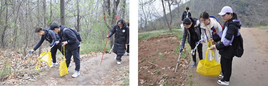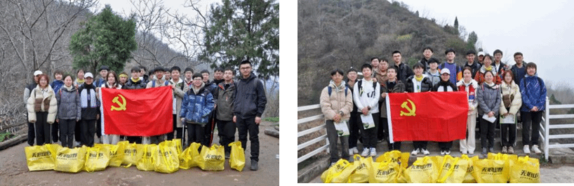 活动中,支部成员们戴上手套,手持垃圾捡拾夹、垃圾收纳袋等清洁工具,分小组合作,默契配合,清理沿途垃圾。大家积极地投入到捡拾垃圾、绿色环保的公益活动之中,为保护自然,守护秦岭原色献出一份力量。