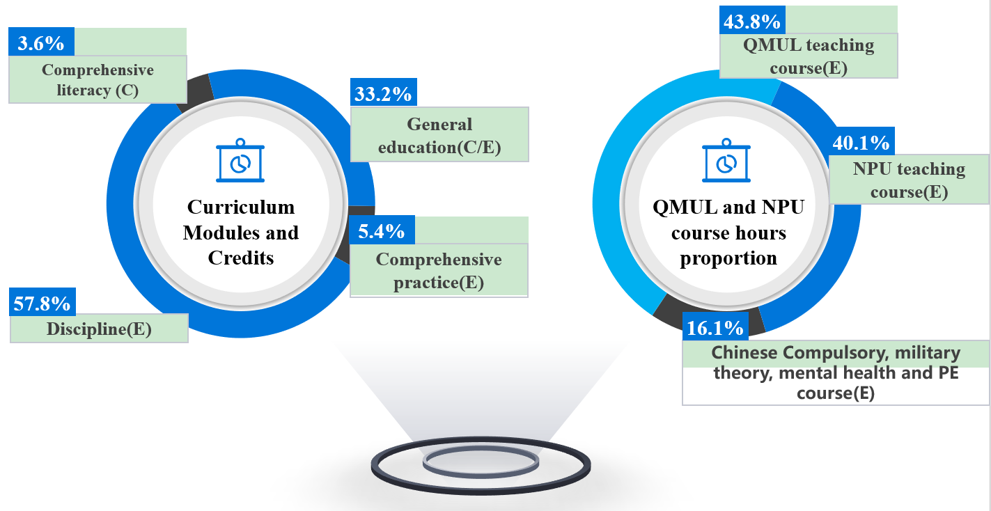 Reference: Code QX courses are taught by QMUL. Code NX courses are taught by NPU. Code U courses are Chinese Compulsory Courses, Mental Health, Military Theory courses from MoE, as well as some elective courses. |
