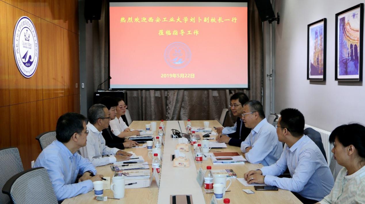 On the morning of May 22, Liu Bu, Vice President of Xi 'an Technological University, came to NPU for investigation and exchanged views on Sino-foreign cooperative education of QMES. Wan Xiaopeng, Vice President of NPU, Liu Xiaogang, Deputy Director of Office of International Cooperation, Kong Jie, Dean of QMES attended the seminar.