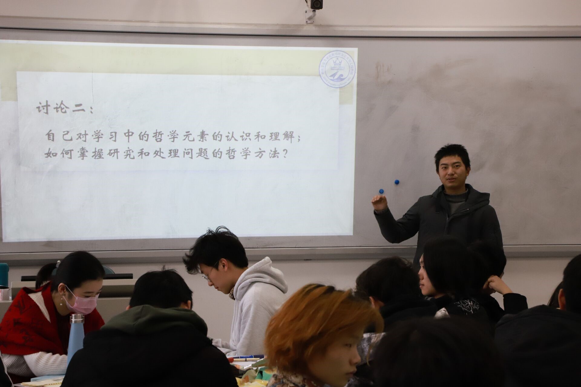 Zheng Zhi from QMES started with the problems caused by the COVID-19 pandemic, explaining the law of the unity of opposites in contradiction. He emphasized that when we encountered difficulties and problems, we must calm down and take the initiative to resolve contradictions and turn disadvantages into advantages. Based on philosophical elements, Du Jinbo analyzed the development history of nanotechnology from the perspective of materialism. He believed that the use of materialist dialectics in learning was of great benefit to the study of professional knowledge.