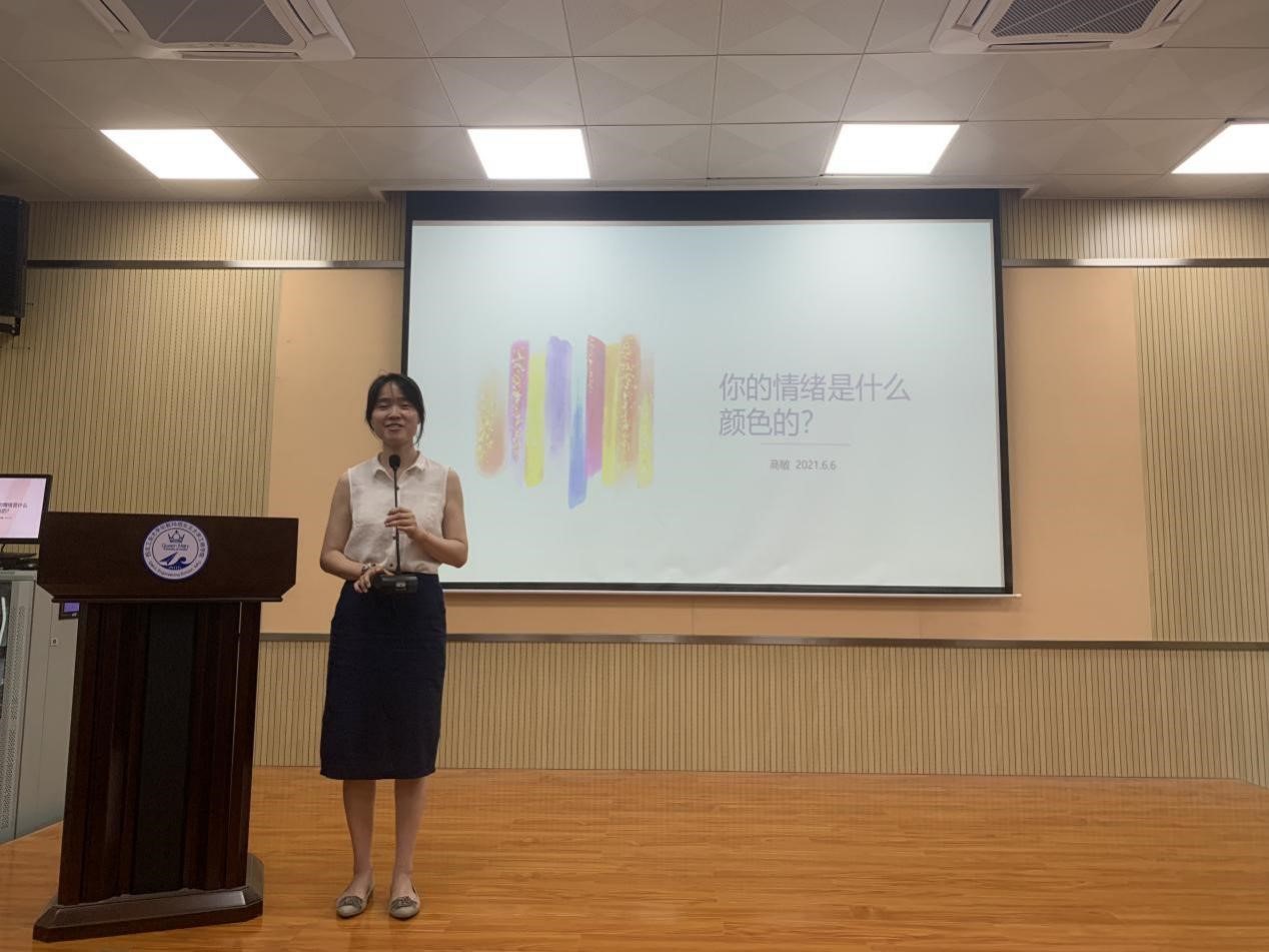 On June 6, QMES held a psychological education activity themed “Sunshine Escort in a Cool Summer” at Xingtianyuan Sports Ground of Chang’an Campus. Gao Min, Deputy Party Secretary of School of Foreign Studies, delivered a psychological lecture named “What Color is Your Mood?” in the Lecture Hall of QMES. and which is presided over by Cheng Yin, Vice Dean of QMES. Meanwhile, the psychological committee members of all grades and student representatives of grade 2020 attended this lecture.