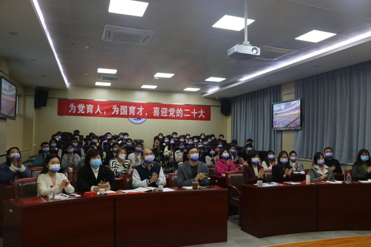 The past five years since the 19th CPC National Congress have been truly momentous and extraordinary. Over the past five years, the CPC Central Committee, with Comrade Xi Jinping at its core, has effectively coped with the grave and complex international situation and a series of major risks and challenges, stuck to innovation, dared to fight and been good at fighting, united and led the Chinese people in realizing the first centenary goal, embarking on a new journey of fully building a modern socialist country, and marching toward the second centenary Goal. The report delivered by Xi was lofty, rich in connotation and inspiring. When watching the opening session, the teachers, students and other staff members of the school were full of enthusiasm and concentration, who listened to the report and took notes attentively, and responded to the wonderful report with warm applause from time to time.