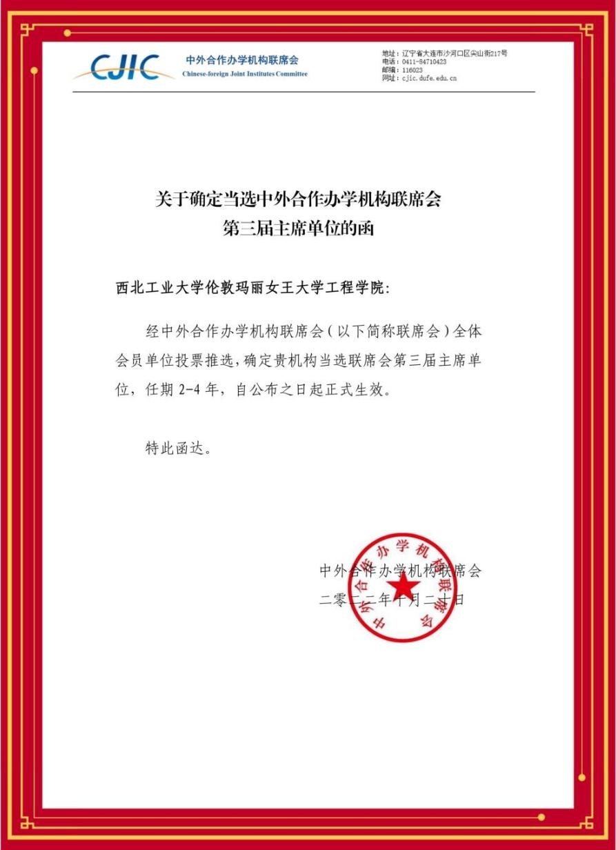 Recently, adhering to the principles of openness, fairness and impartiality, the secretariat of Chinese-foreign Joint Institutes Committee (CJIC) organized an election for the Third Chairman Units. Finally, all the member units voted to elect 20 chairman units, and QMES gloriously gained office as one chairman unit of CJIC once again.