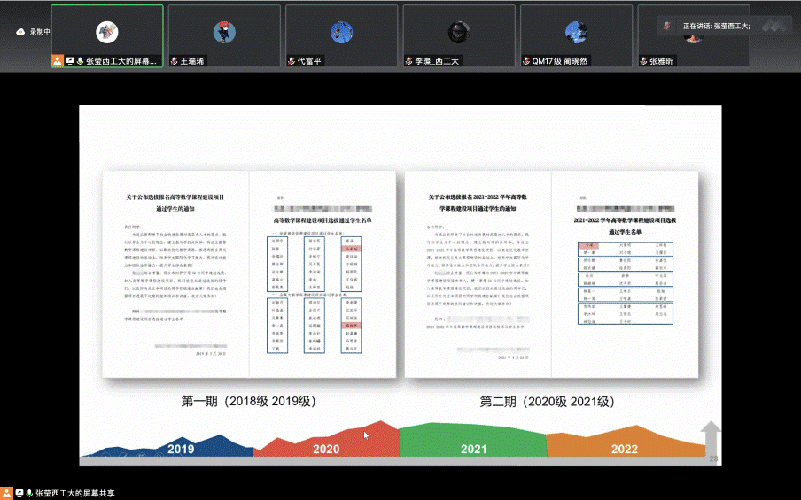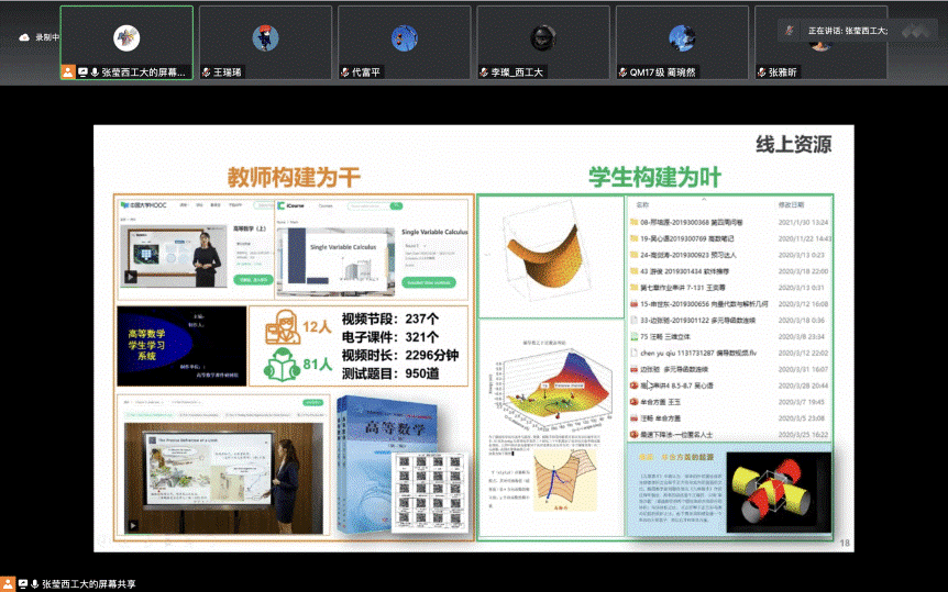 Deputy Secretary Zhang introduced the development and achievements of the project, and said that Single Variable Calculus was the most popular English-version course of higher mathematics on MOOC. She encouraged students to spread the beneficial experience of the project, promote the curriculum to be in line with international standards, and enhance international learning ability. Finally, Ms Zhang introduced the next work plan, including the optimization and improvement of MOOC, the construction and operation of new media platforms and terminals, and encouraged students to put forward new ideas and suggestions for the development of the course based on their understanding of the course.