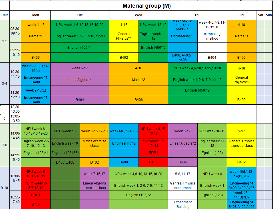 Time Table for Innovation Lab during Autumn Semester of 2018