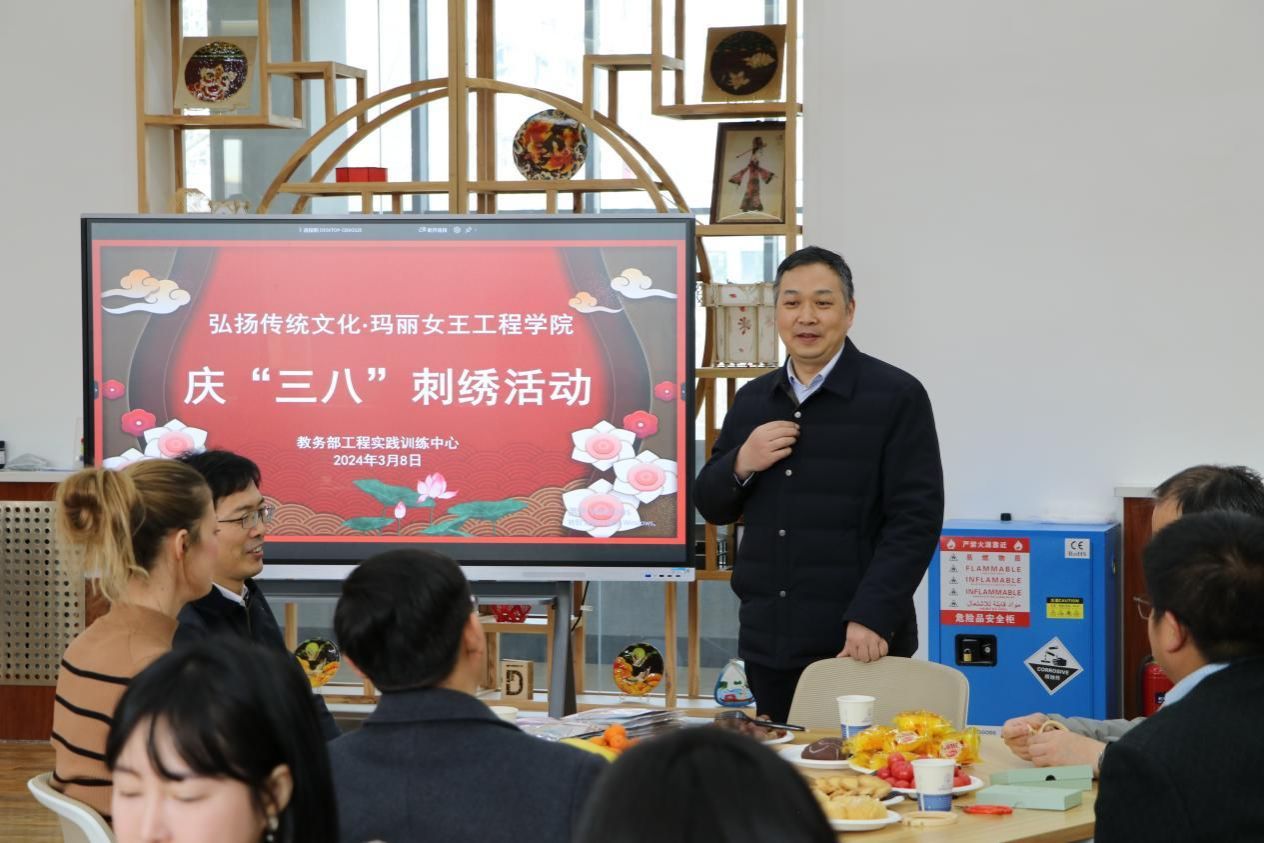 春风轻拂,指尖流转,万千彩线在巧手中翩翩起舞,绣出了一幅幅绚烂多彩的图案,这是属于中国女性的浪漫与智慧——刺绣。为庆祝第114个“三八”国际妇女节,3月8日下午,TapTap在长安校区工程实践训练中心创新社区国际化创新实践基地C201精心策划了一场主题为“线线情缘,魅力刺绣”的活动,以展现新时代女性的风采与魅力。教务部部长王海鹏、教务部(工程实践训练中心)主任蒋建军、公司党委书记兼副经理代富平、副经理王永欣、院工会主席武阿璟、英方老师及公司教职工参加此次活动。