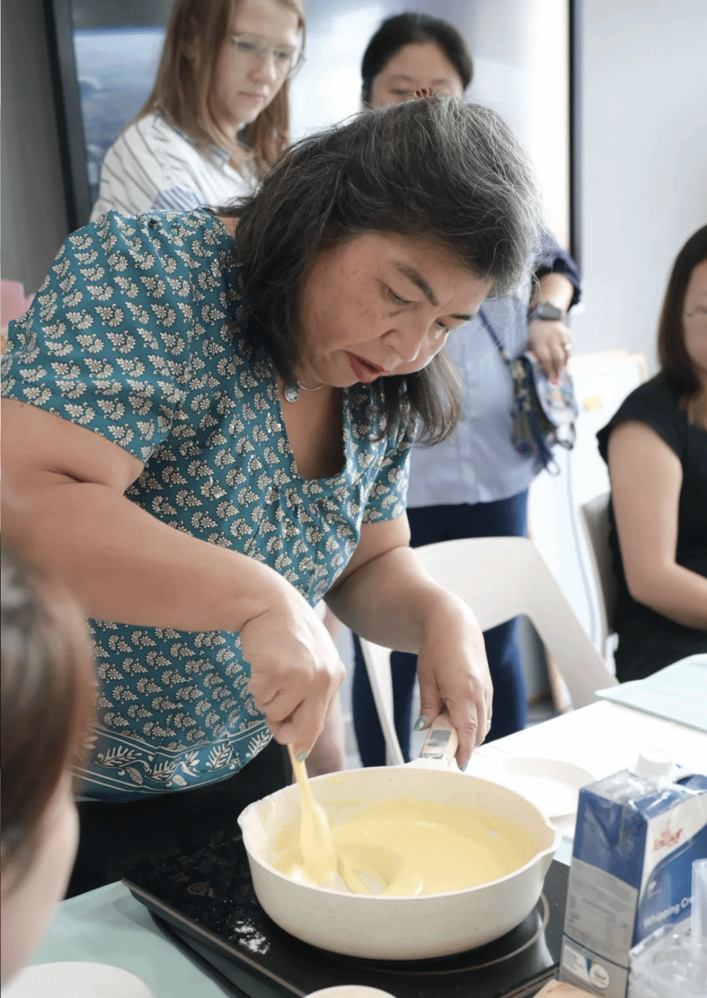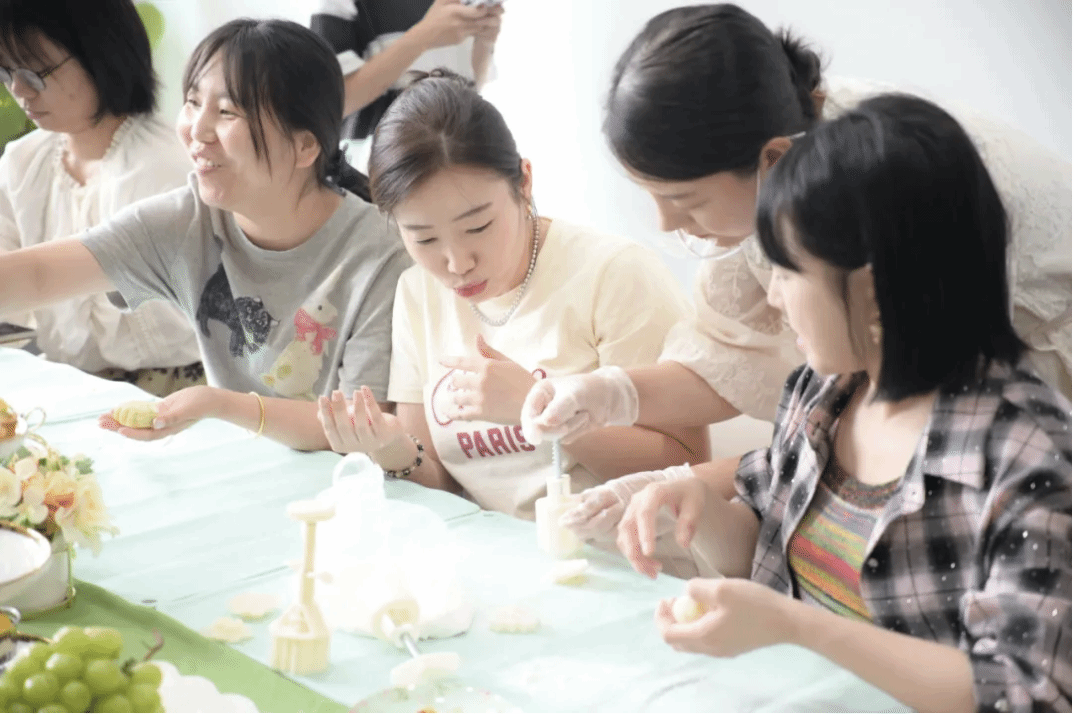 在专业的甜点老师指导下,教师们亲自动手,体验制作月饼的乐趣。这不仅让大家在忙碌的工作之余放松身心,也增进了同事间的交流与合作。在欢声笑语中,每位教师都完成了属于自己的特色月饼,将这份特别的中秋礼物带回家与家人共享。